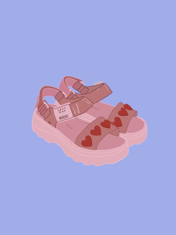 A series of illustrations of the Lazy Oaf X Melissa collaboration.
